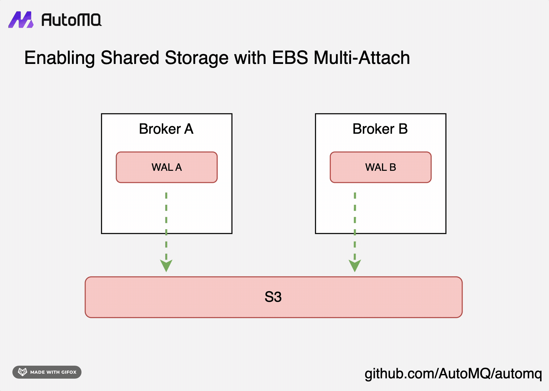 Upon detecting the failure of Broker A, the Controller will attach its EBS WAL to Broker B in a multi-attach manner.