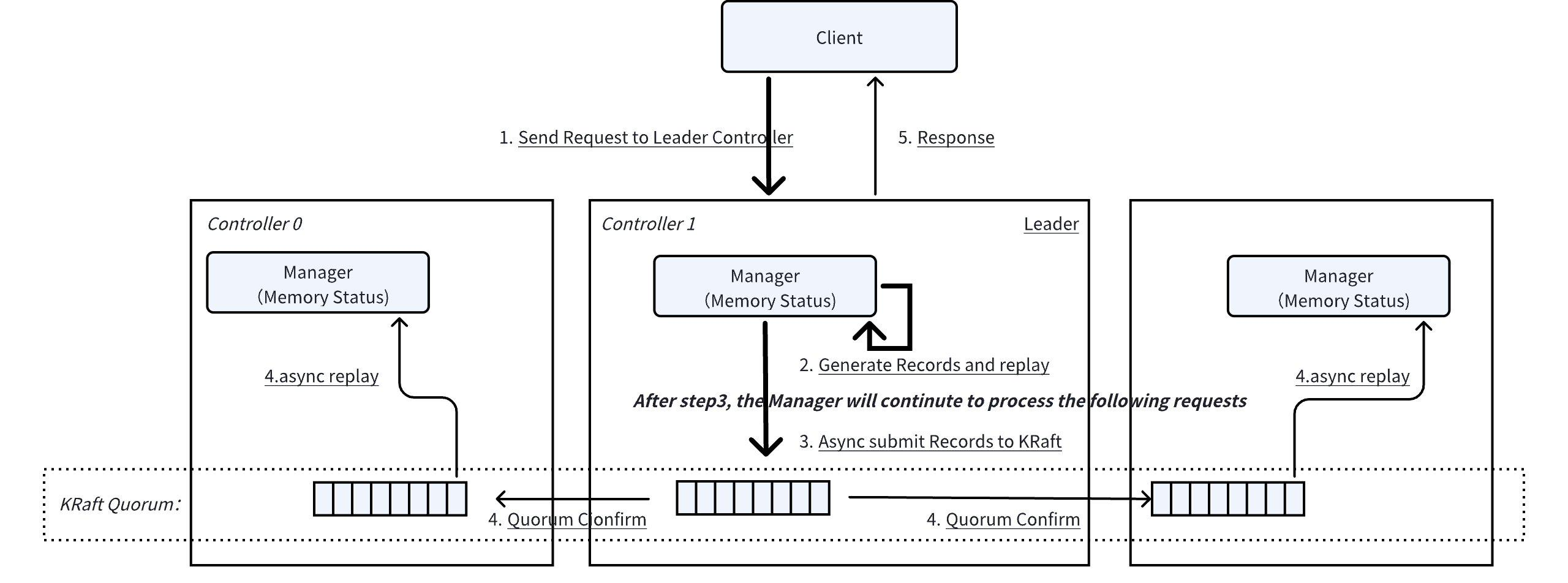 Metadata Updates : The leader controller writes metadata changes to the