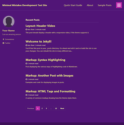 Minimal Mistakes is a flexible two-column Jekyll theme, perfect for building personal sites, blogs, and portfolios. As the name implies, styling is purposely minimalistic to be enhanced and customized by you 😄.