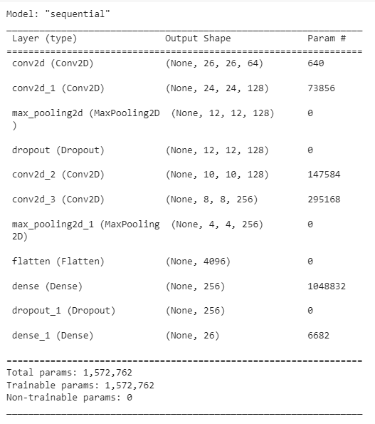 The dataset used for training the models is sourced from Kaggle and consists of handwritten alphabet images. The dataset contains 26 folders (A-Z) containing handwritten images in size 28x28 pixels, each alphabet in the image is centre fitted to 2020 pixel box and each image is stored as Gray-level