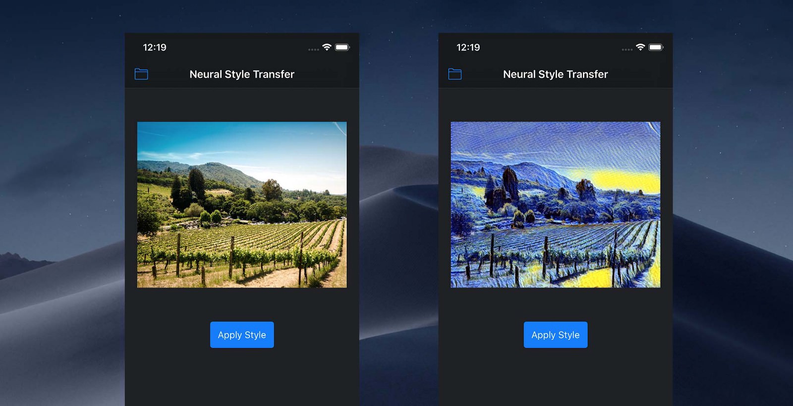 Full article here : https://medium.com/@alexiscreuzot/building-a-neural-style-transfer-app-on-ios-with-pytorch-and-coreml-76e00cd14b28
