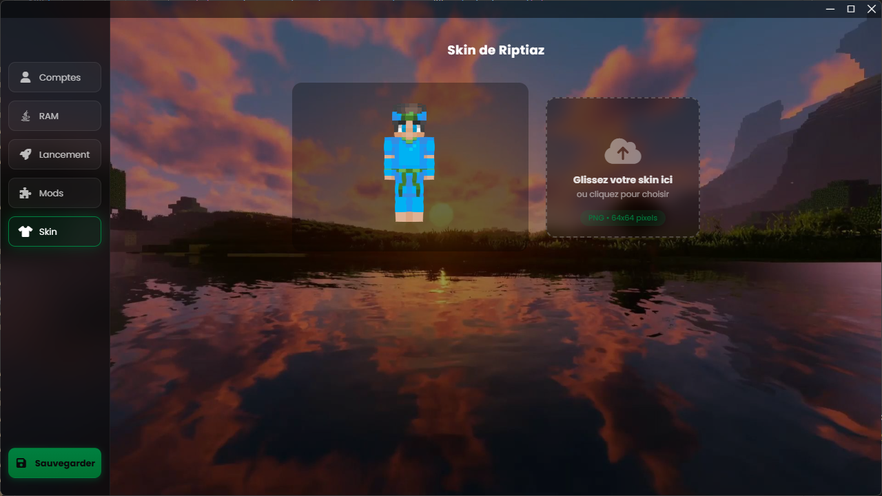 - 🖼️ Affichage et upload du skin (SkinAPI & Skin3D viewer)