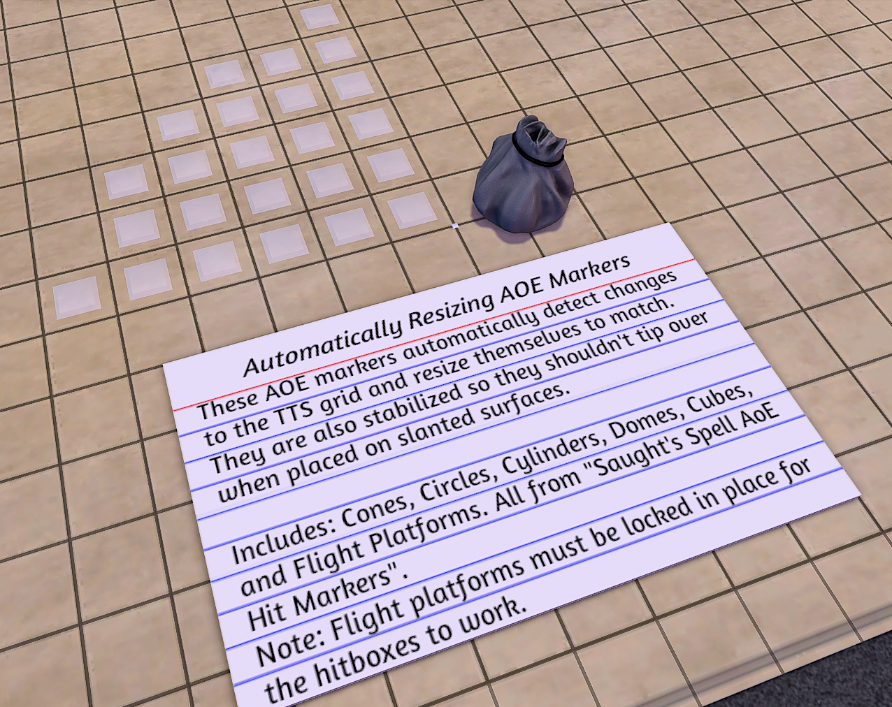 - These GridSaver tokens allow you to save TTS grid settings with your OneWorld maps.