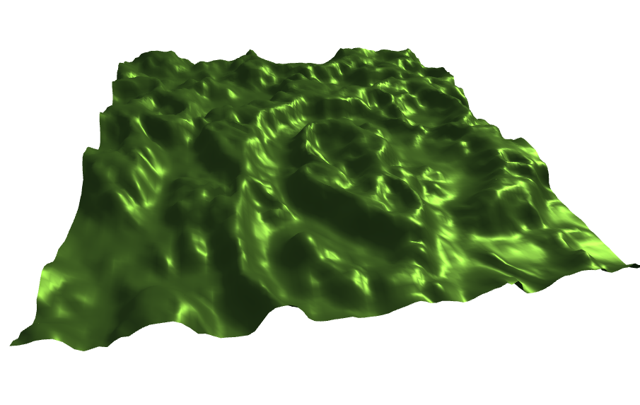 The index.html file in this repository demonstrates the application of noise onto the height displacement of a plane. With just a few iterations a procedural terrain effect is possible. This is a simplified version of the way terrain generation in games like minecraft work.