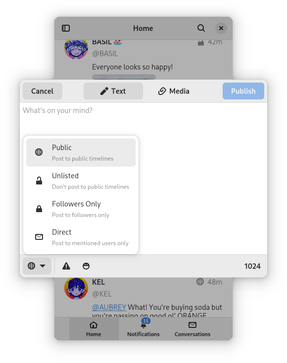 - Design inspiration taken from Mastodon & Elk