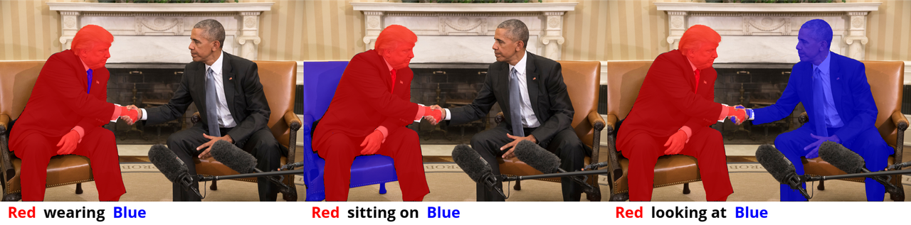 (1) generate arbitary objects masks and reason relationships in between.