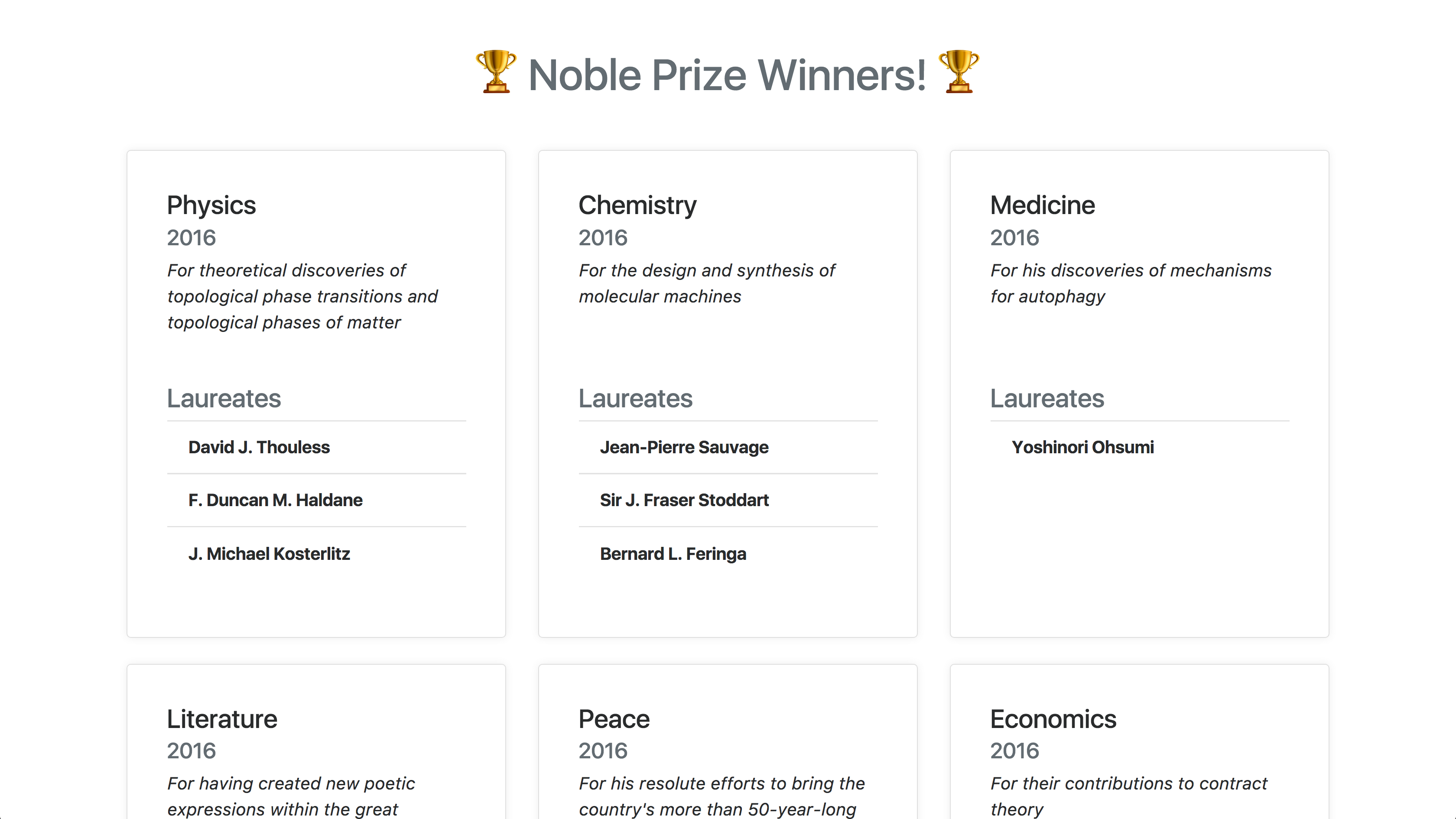 I detta repo finns en början på en sida som ska visa upp olika rutor med Nobelpristagare.