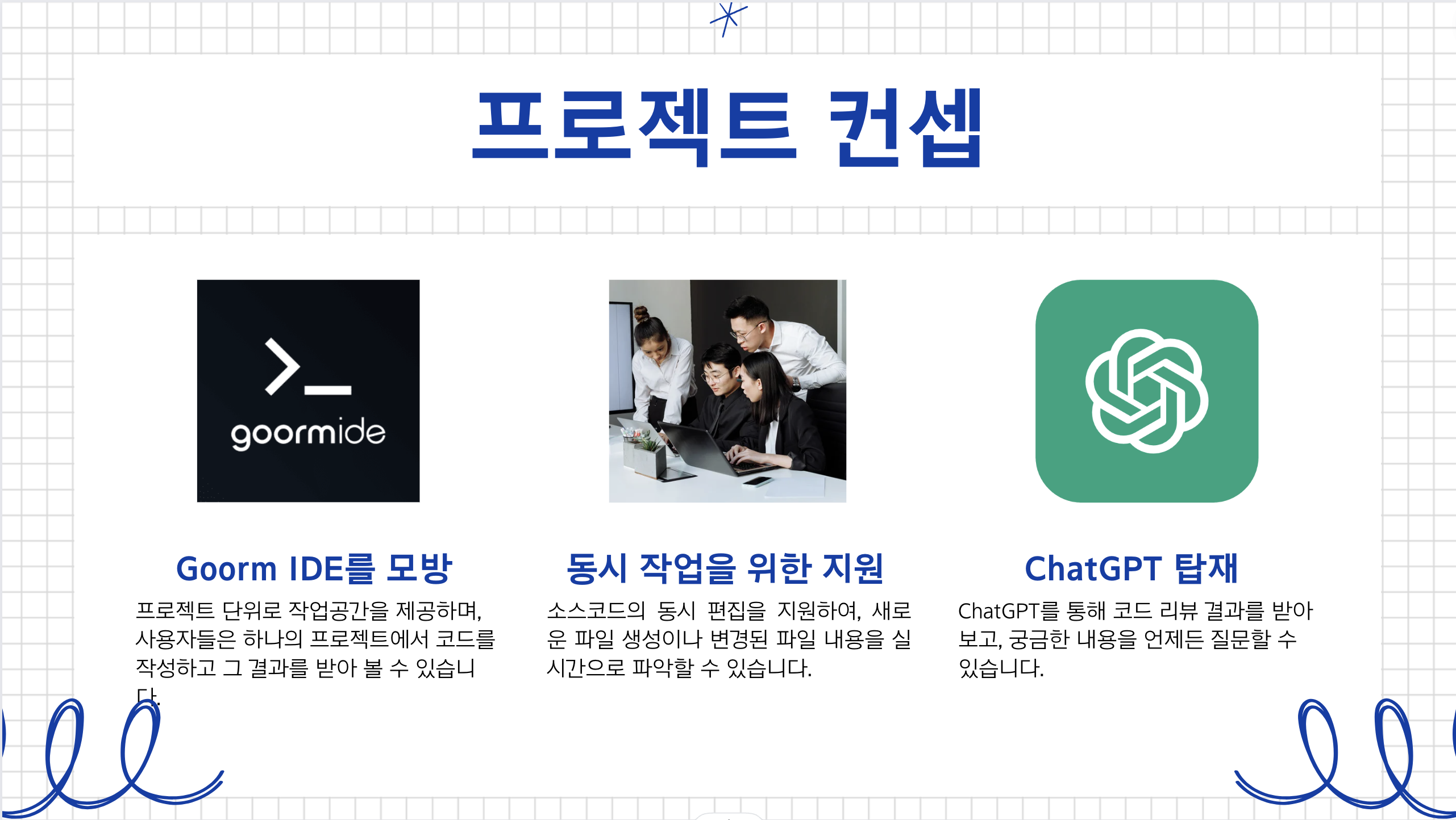사용자는 여러 프로젝트를 만들고, 소스코드를 작성하며 실행시킬 수 있습니다. 모든 내용은 저장되며, 다른 사용자를 초대해 함께 소스코드를 수정할 수 있습니다. 각 프로젝트 개발환경은 ECS를 통해 컨테이너로 관리됩니다.