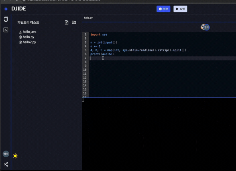IDE의 프로젝트에 참여해있는 사용자간에 텍스트를 주고 받을 수 있는 기능입니다. 사용자의 입/퇴장시에 '@@@님이 입장 | 퇴장 했습니다.' 라는 문구가 보여집니다. 구독 - 발행 모델을 적극적으로 사용하기 위해 STOMP를 사용했습니다.