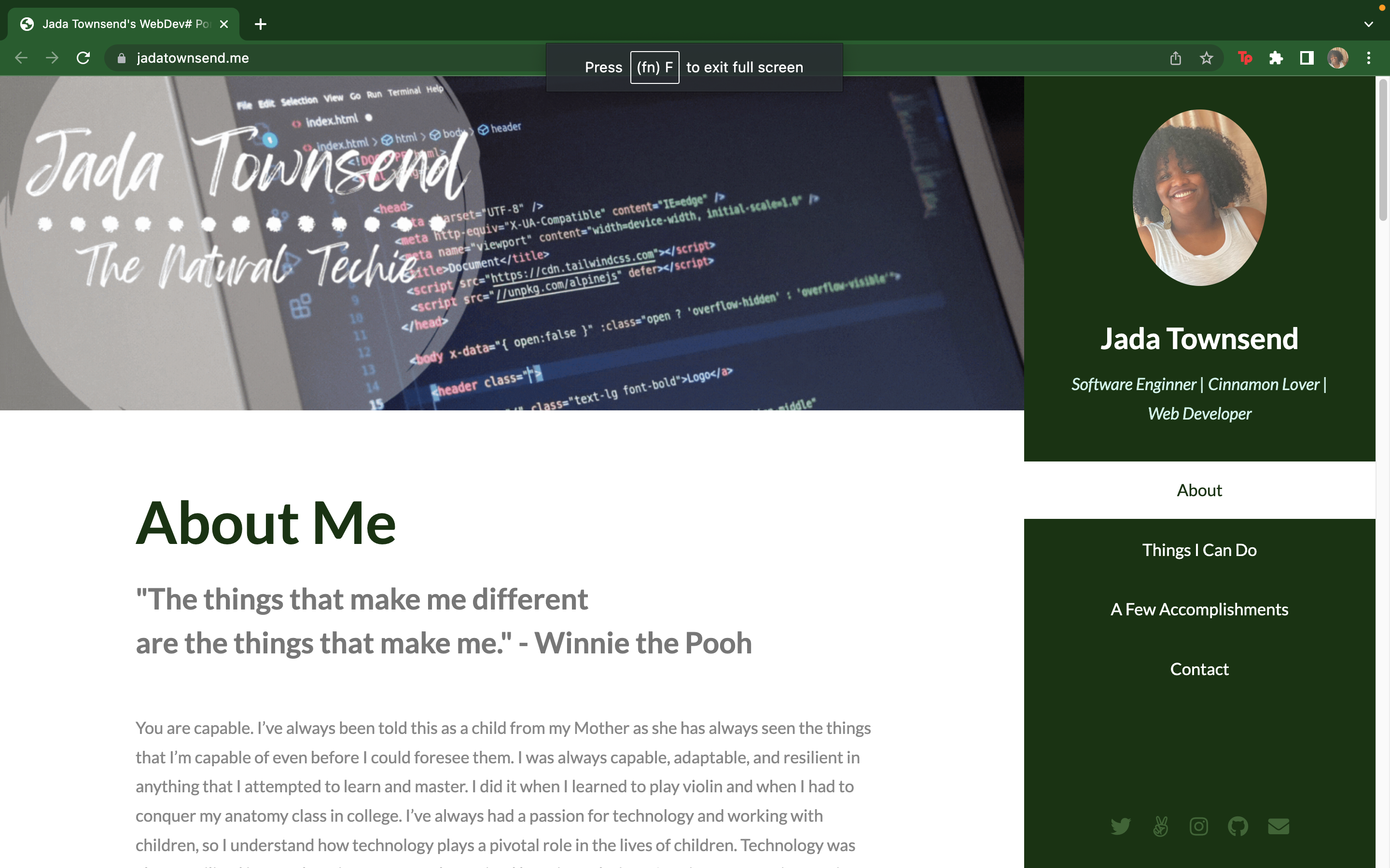 This is my Web Developer Portfolio that I made to represent myself on a digital platform and to give Employers/Customers a glimpse into the work I have done.