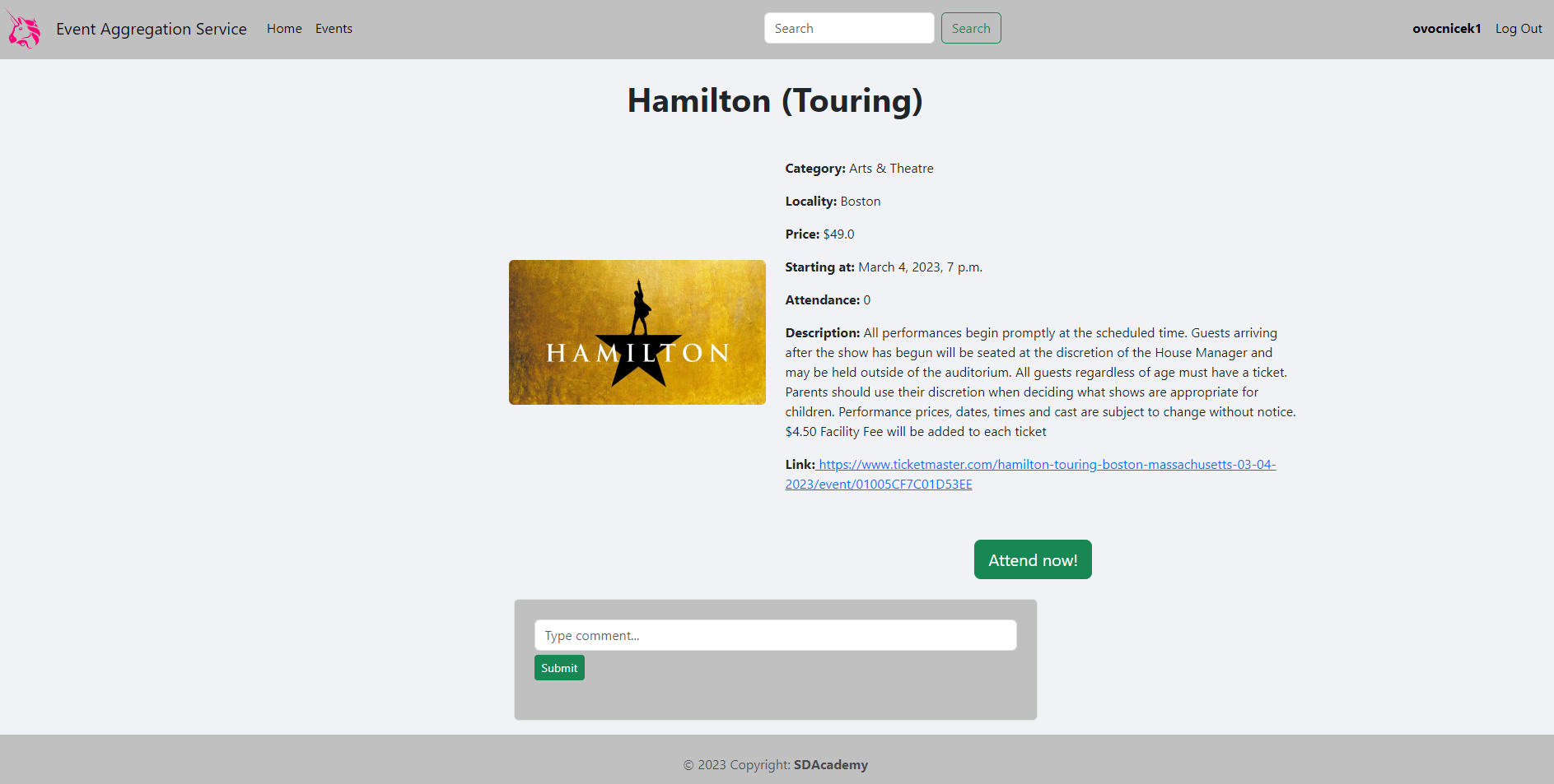 - Commenting on events by a logged in users.