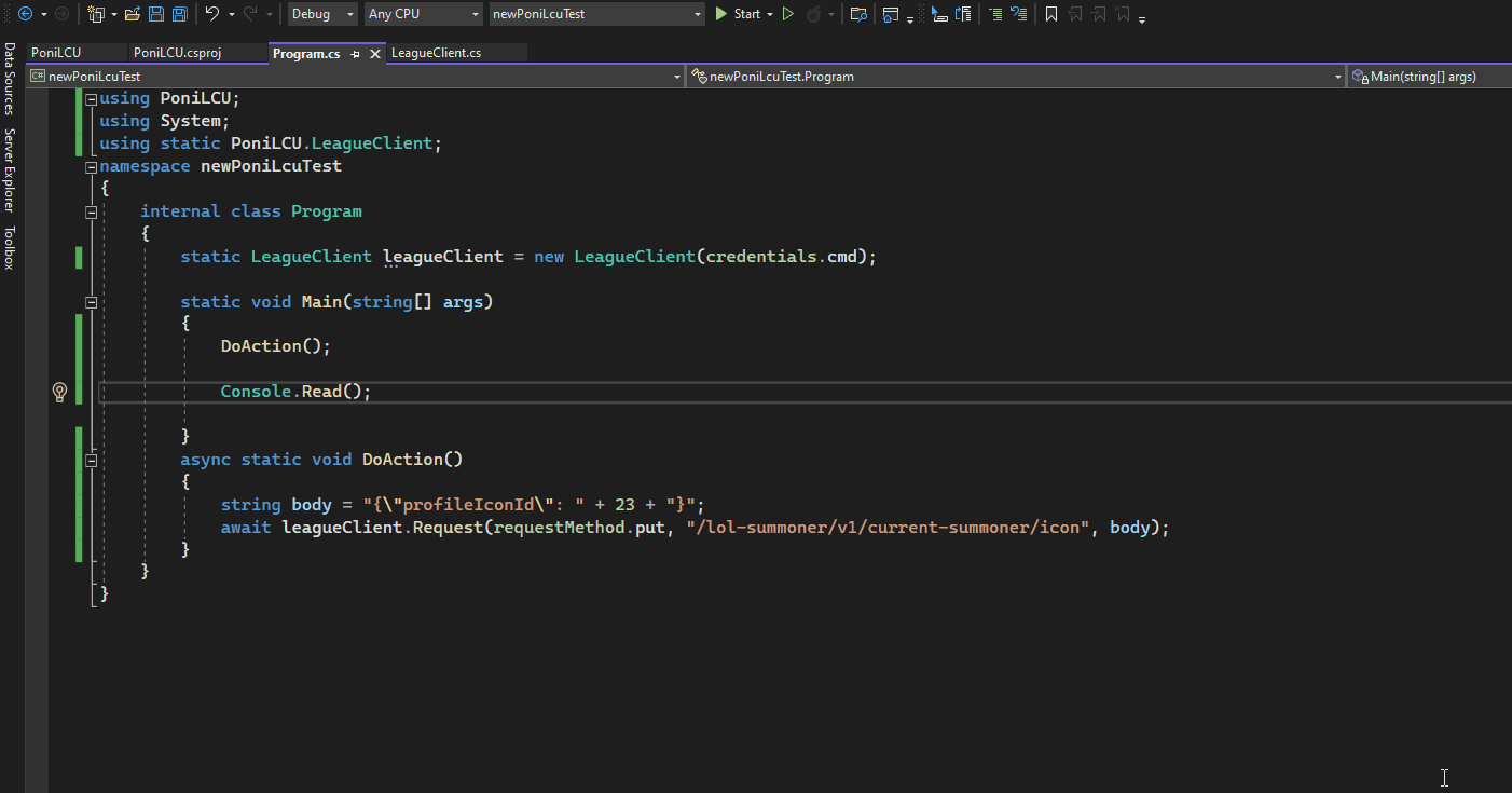static LeagueClient leagueClient = new LeagueClient(credentials.cmd);