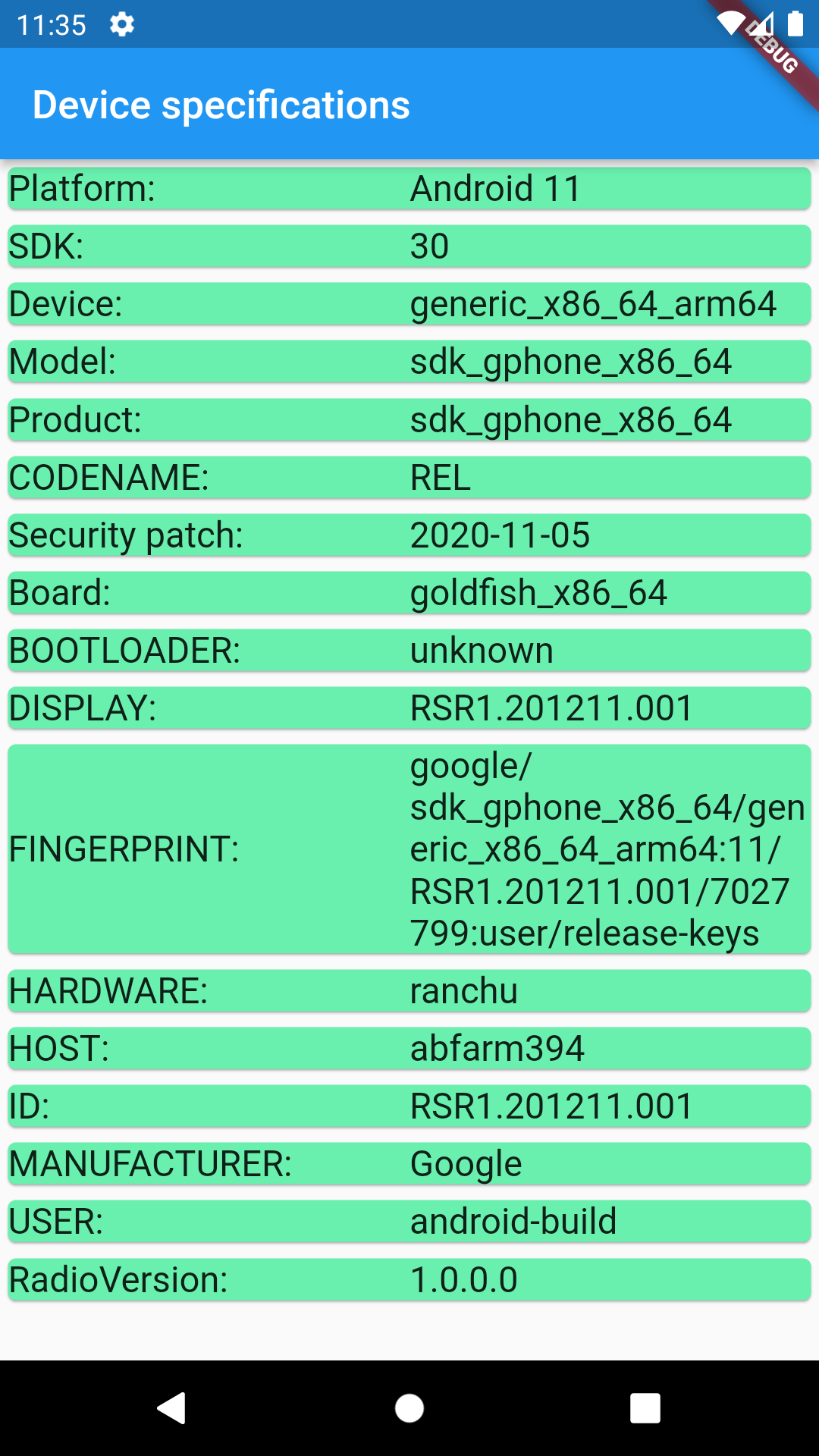Plugin obtain and show smartphone specifications. Use Android platform-specific implementations with Kotlin.