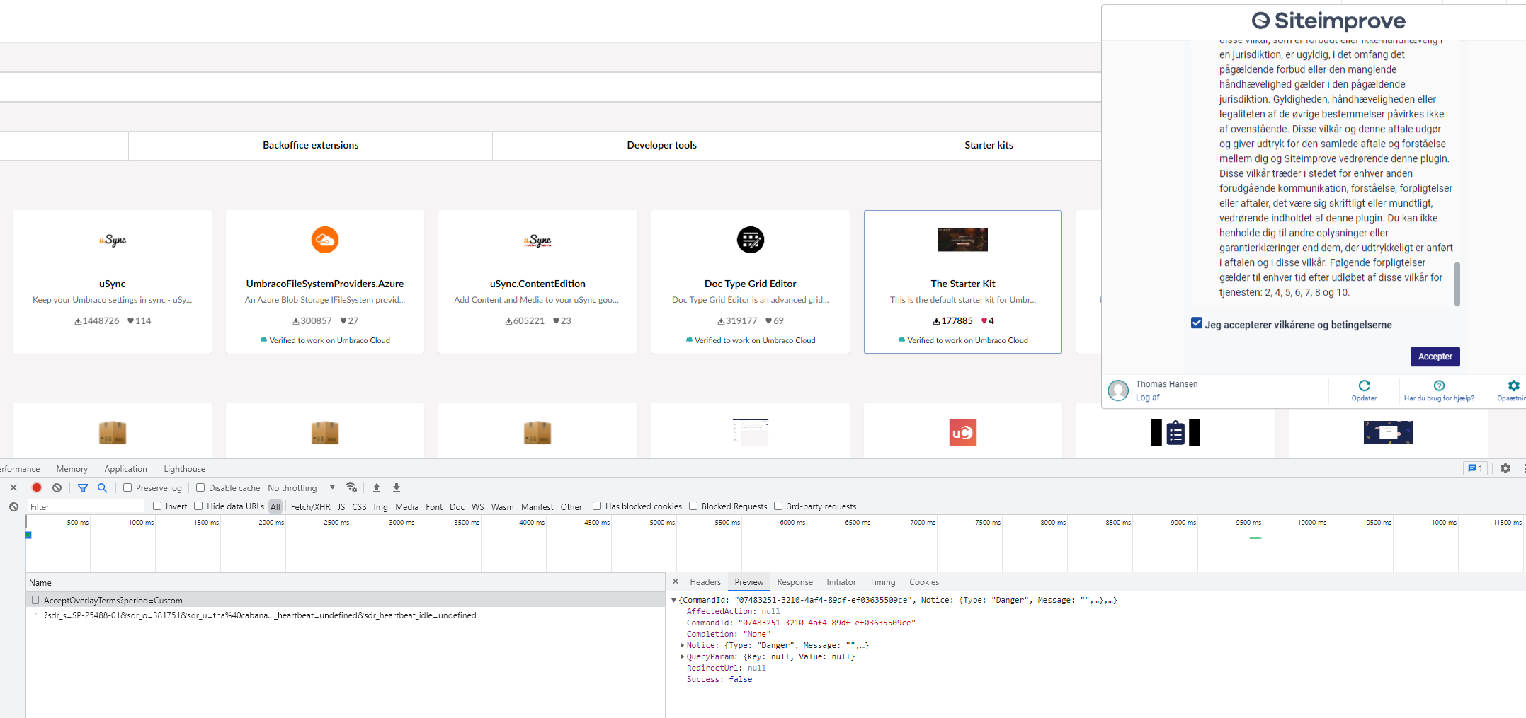 After installing we can't accept the terms. I get this response. have tried to reinstall the plugin.