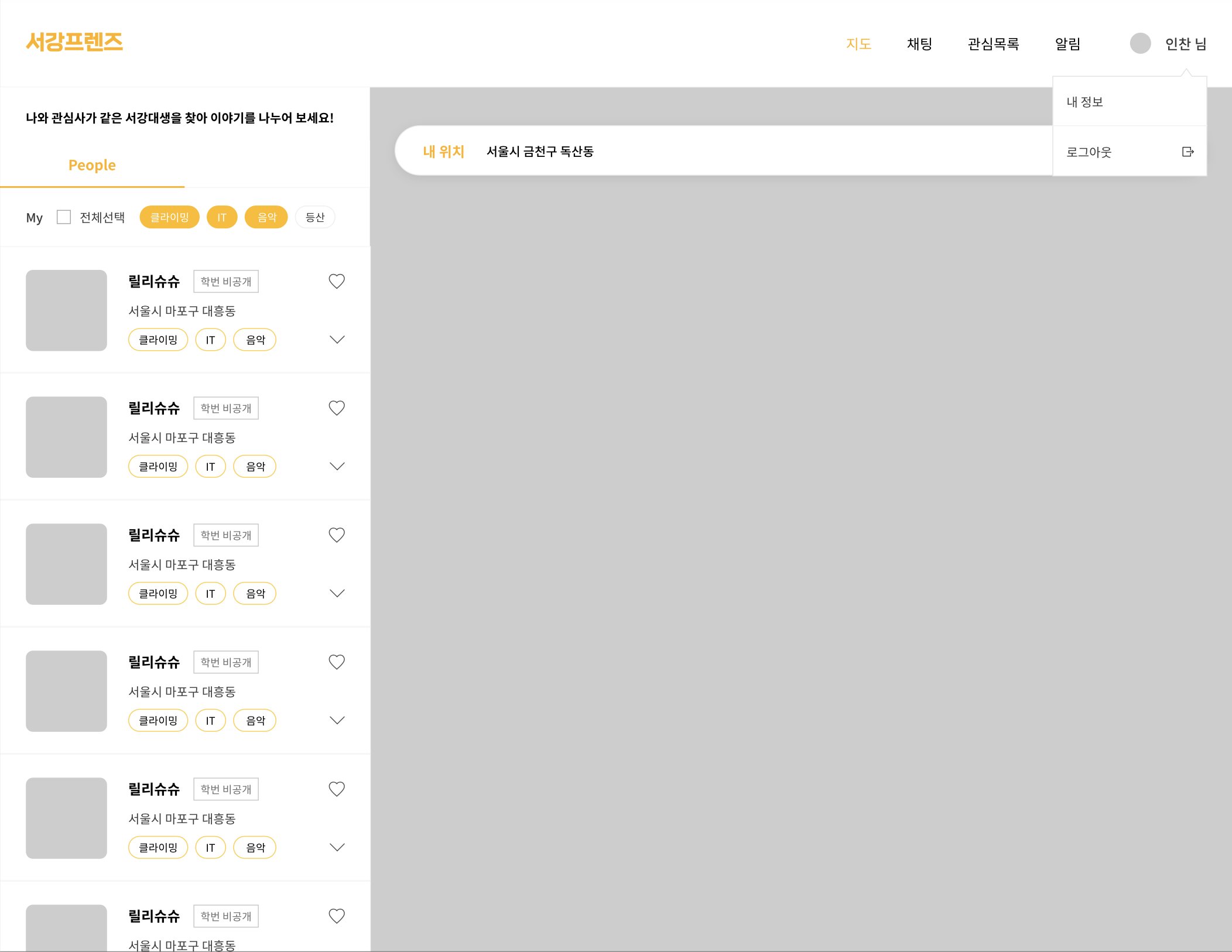 - 위치 인증을 이용한 같은 동네 사용자 찾기