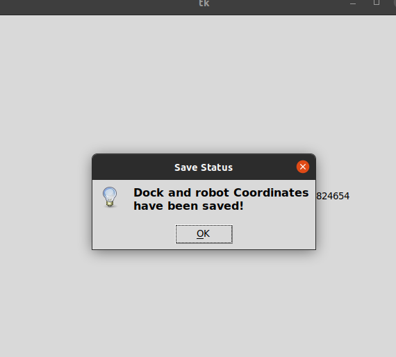 Furthermore, a GUI window would pop up. The GUI would display the absolute distance(in metres) between base_link and the dock frame.