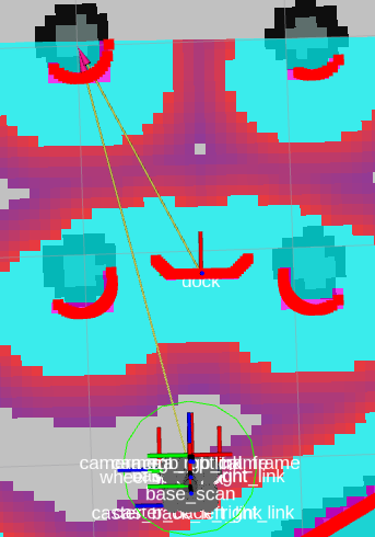 Once the robot has detected a suitable dock candidate, the dock frame would appear in rviz2.