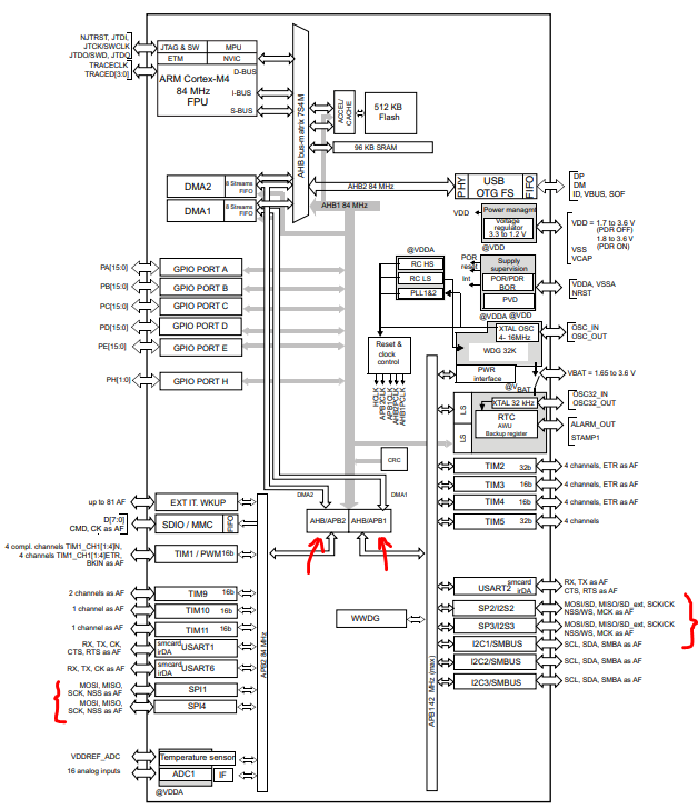First, we start finding which is the frequency of the clock signal sourced to the SPI peripheral. From the datasheet of the STM32F401RE (page 14) we can see that SPI peripherals use the clock APB1 or APB2 (depending on the SPI peripheral used). For example, SPI2 uses APB1.