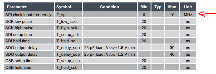 The prescaler serves to divide the clock frequency sourced to the SPI peripheral in order to achieve the desired frequency transmission during the communication. First, we start finding which is the frequency of the clock signal sourced to the SPI peripheral. From the datasheet of the STM32F401RE (page 14) we can see that SPI peripherals use the clock APB1 or APB2 (depending on the SPI peripheral used). For example, SPI2 uses APB1. Then, we can go to the STM32CubeIDE and check which frequency is configured for the APB2. We can see that is configured with 42 MHz. If we want a frequency transmission equal to the example in the other issue (500 kHz), we obtain a prescaler equal to 84. We have 84 available as prescaler? No. We can use 64 (frequency transmission equal to 656.25 kHz) or 128 (frequency transmission equal to 328,125). You can choose either of the two as the obtained frequencies are in the frequency range compatible with the sensor. |