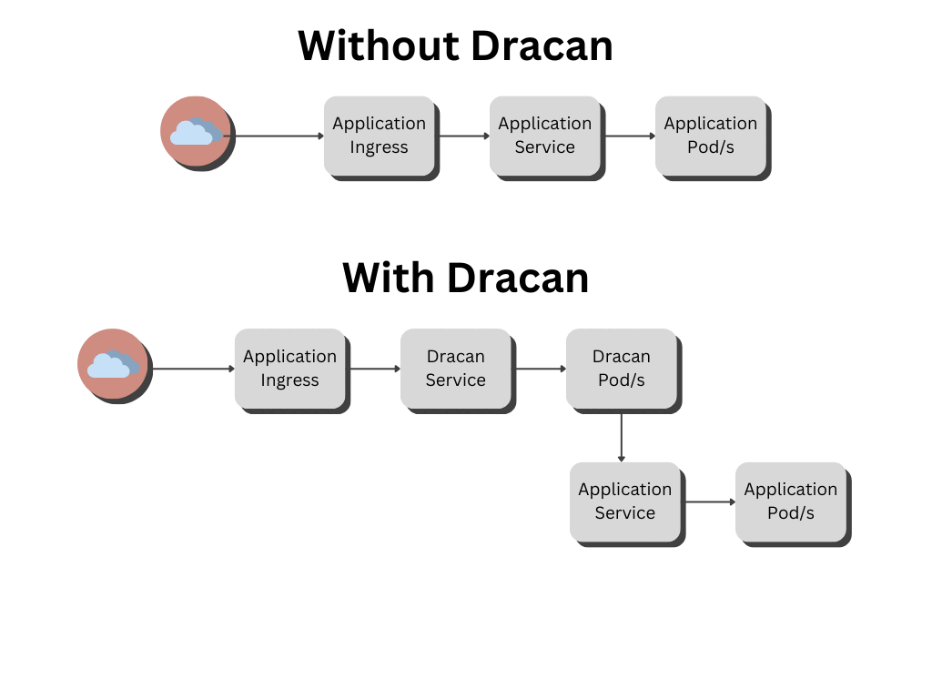 Dracan is designed to be implemented as middleware in Kubernetes (k8s) environments, functioning as a gatekeeper for your applications. Follow these steps to integrate Dracan into your system:
