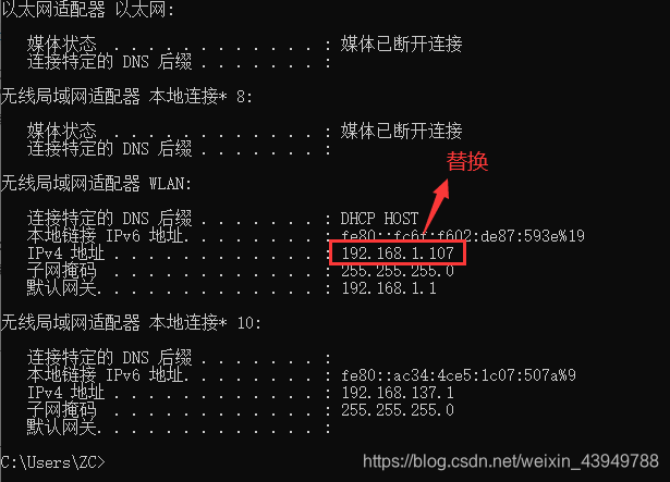 查看自己的IP 地址: 打开命令行:输入命令:ipconfig
