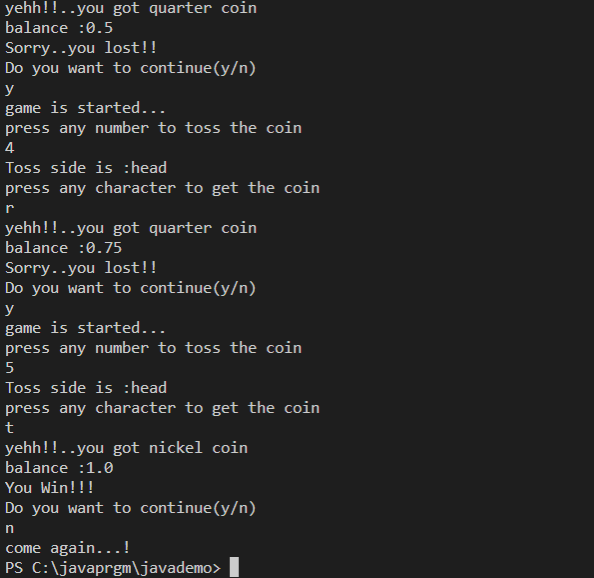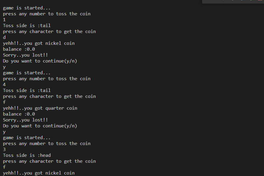 System.out.println("Coin Tossing Game .........");