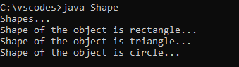 System.out.println("Shape of the object is rectangle...");