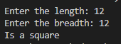 Take values of the length and breadth of a rectangle from the user and check if it is square or not.