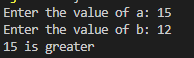 Take two int values from the user and print the greatest among them.