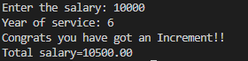 /*A company decided to give a bonus of 5% to the employee if his/her year of service is more than 5 years.
