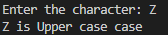 Write a program to check whether an entered character is lowercase ( a to z ) or uppercase ( A to Z ). (Hint - You can use the ASCII value of the character)