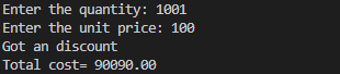 discount=(quantity*10)/100;