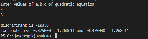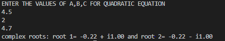 WAP to find roots of a quadratic equation using switch case.
