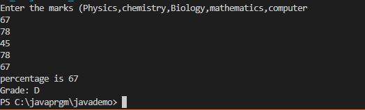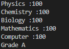 // Mathematics, and Computer. Calculate percentage and grade