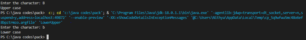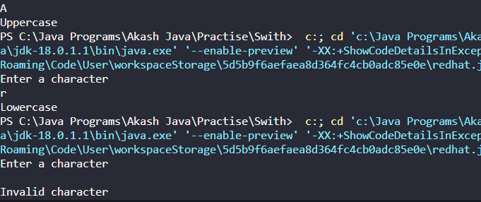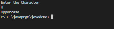 WAP to check whether a character is an uppercase or lowercase alphabet. Using the switch statement.