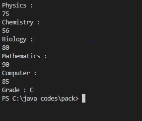 // write a program to input marks of five subjects Physics, Chemistry, Biology,