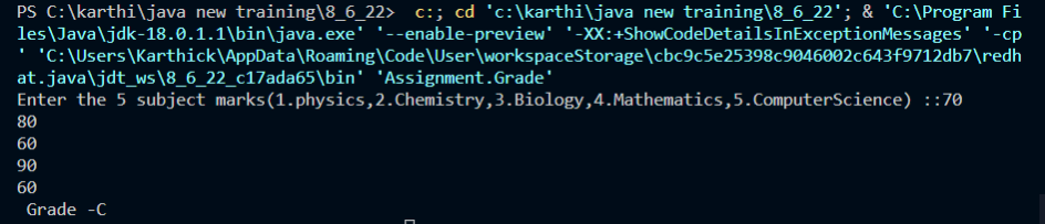 System.out.println("Grade "+val);