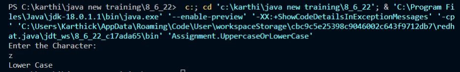 System.out.println("Lower case");