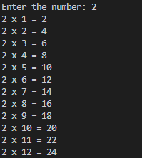 System.out.println(String.format("%d X %d = %d", x, i, x * i));