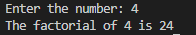 Write a program to find the factorial value of any number entered through the keyboard. Example: factorial 4 = 4 * 3 * 2 * 1 = 24