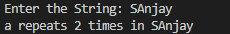 System.out.println("No of times a found is "+count);
