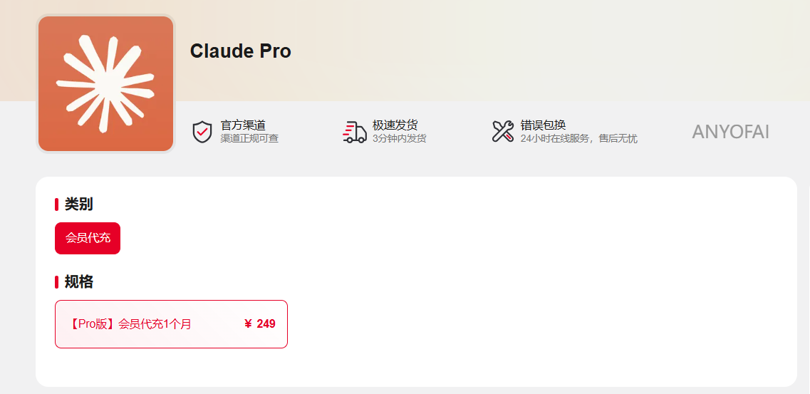 如果你已经有Claude账号,那么请选择“Claude Pro代充”服务;如果你还没有Claude账号,那么就直接选择“Claude Pro账号购买”服务。