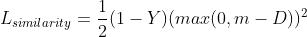 is equal to 1. The goal of this function is to give a penalty of the pairs when the distance is lower than margin
