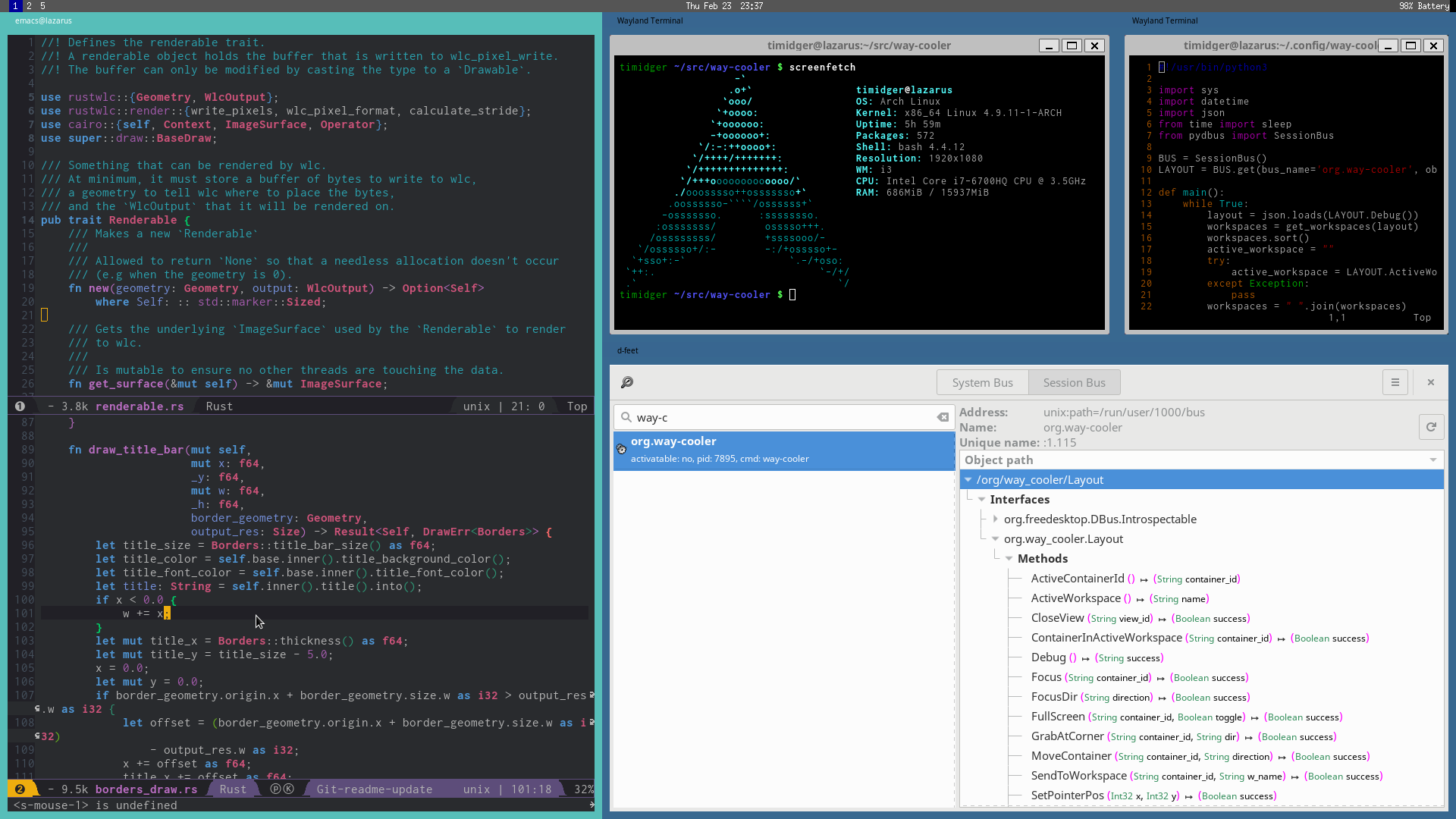 Way Cooler is a customizable tiling window manager written in Rust for Wayland and configurable using Lua.
