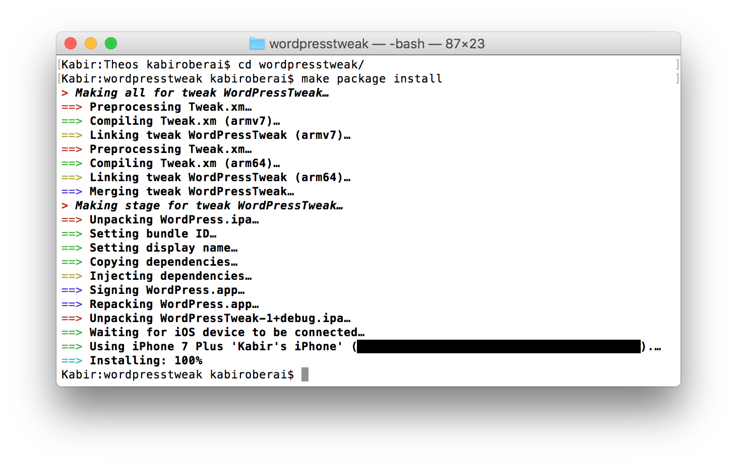 ios-deployto automatically install the app onto a connected device - Tweak more than just code. Theos Jailed allows custom