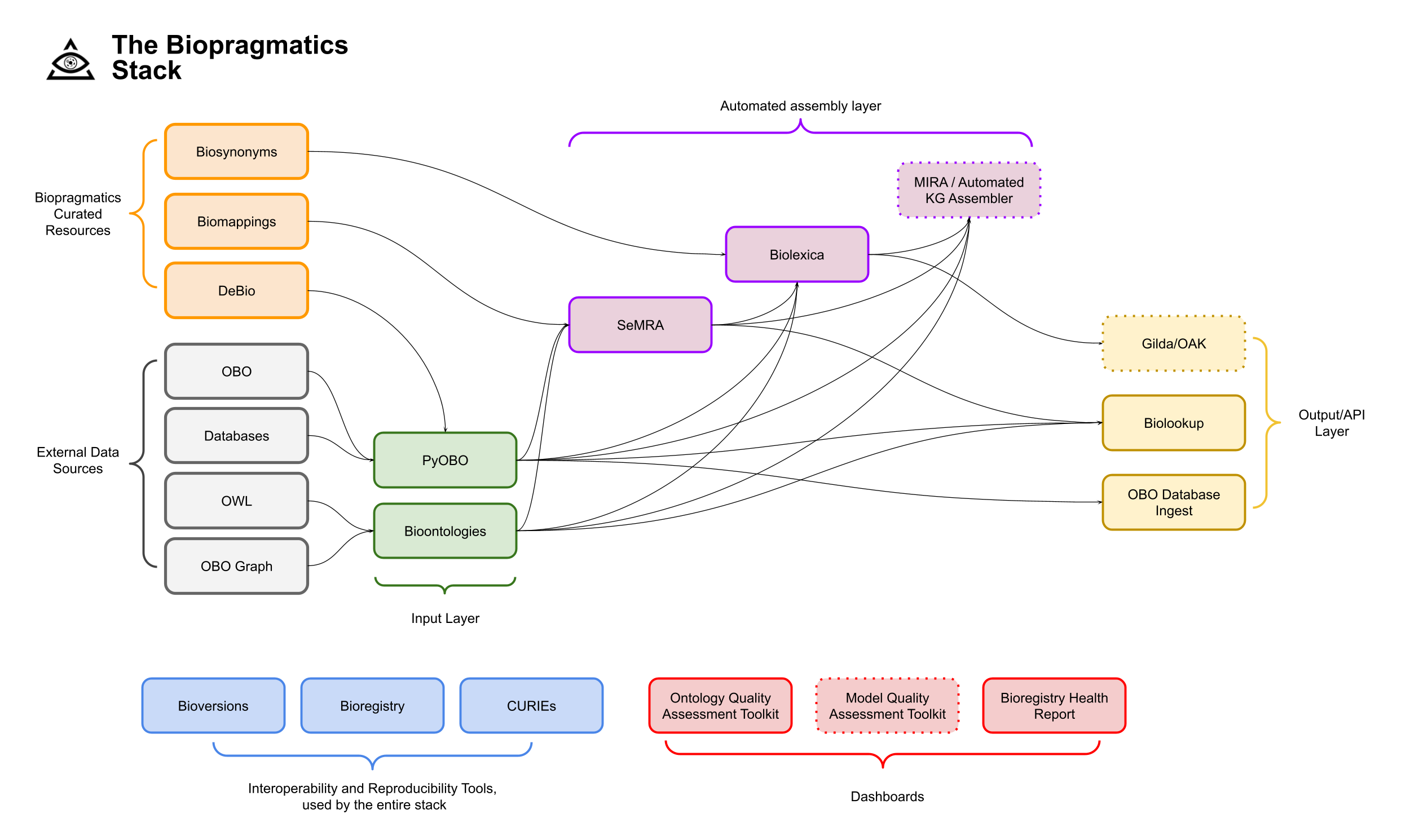 The Biopragmatics Stack is a set of interconnected software components and curated data artifacts that support standardizing and processing biomedical data and knowledge.