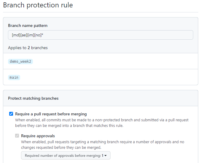 branch protection rule : branch에 merge하기 위해서는 반드시 pr이 선행, 모든 pr에는 approval이 최소 1개 이상 요구