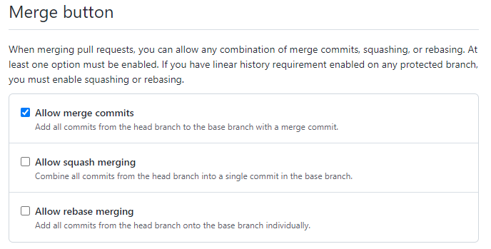 PR Merge 방식 변경 : 기존 rebase 방식에서 merge commit 방식으로 변경