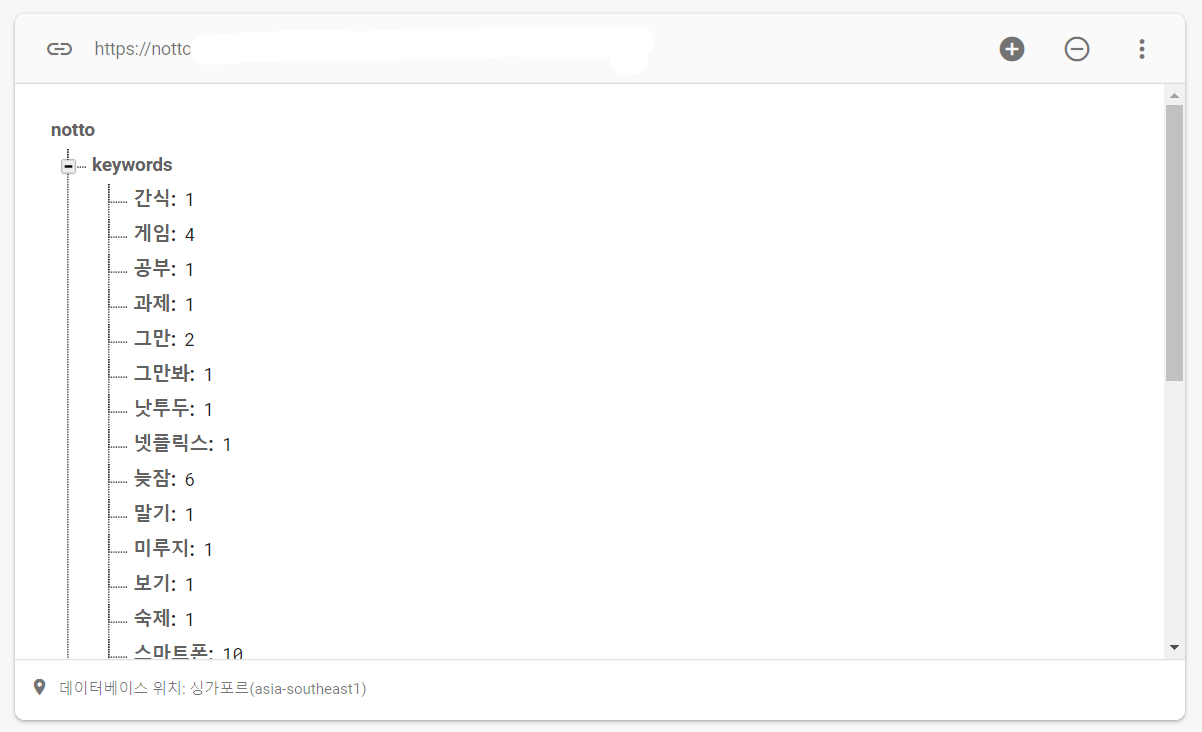 - 품사 분석기 라이브러리를 사용해 추출한 키워드를 Firebase Realtime Database에 저장