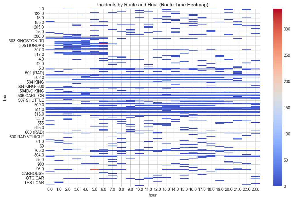 Service Planning Teams can adjust route schedules, identify high-risk periods, and implement service improvements based on historical incident patterns.